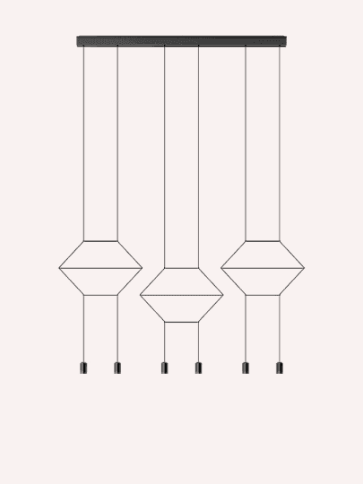 Las luminarias colgantes de la colección Wireflow Lineal se distinguen por su capacidad de trazar composiciones gráficas en el espacio.