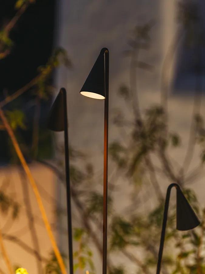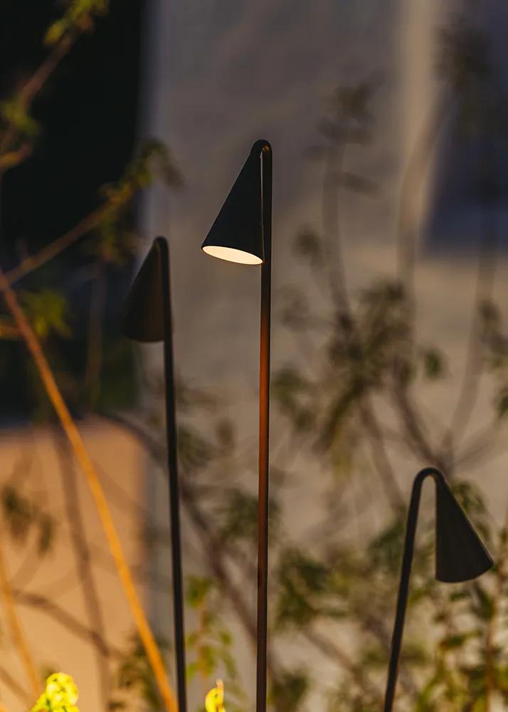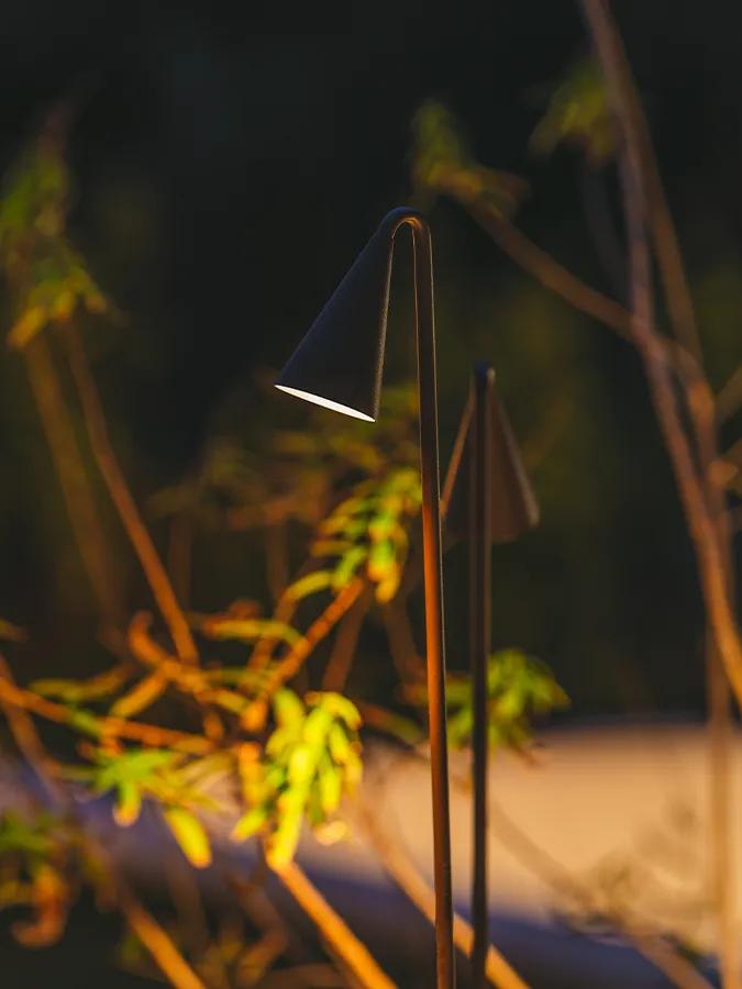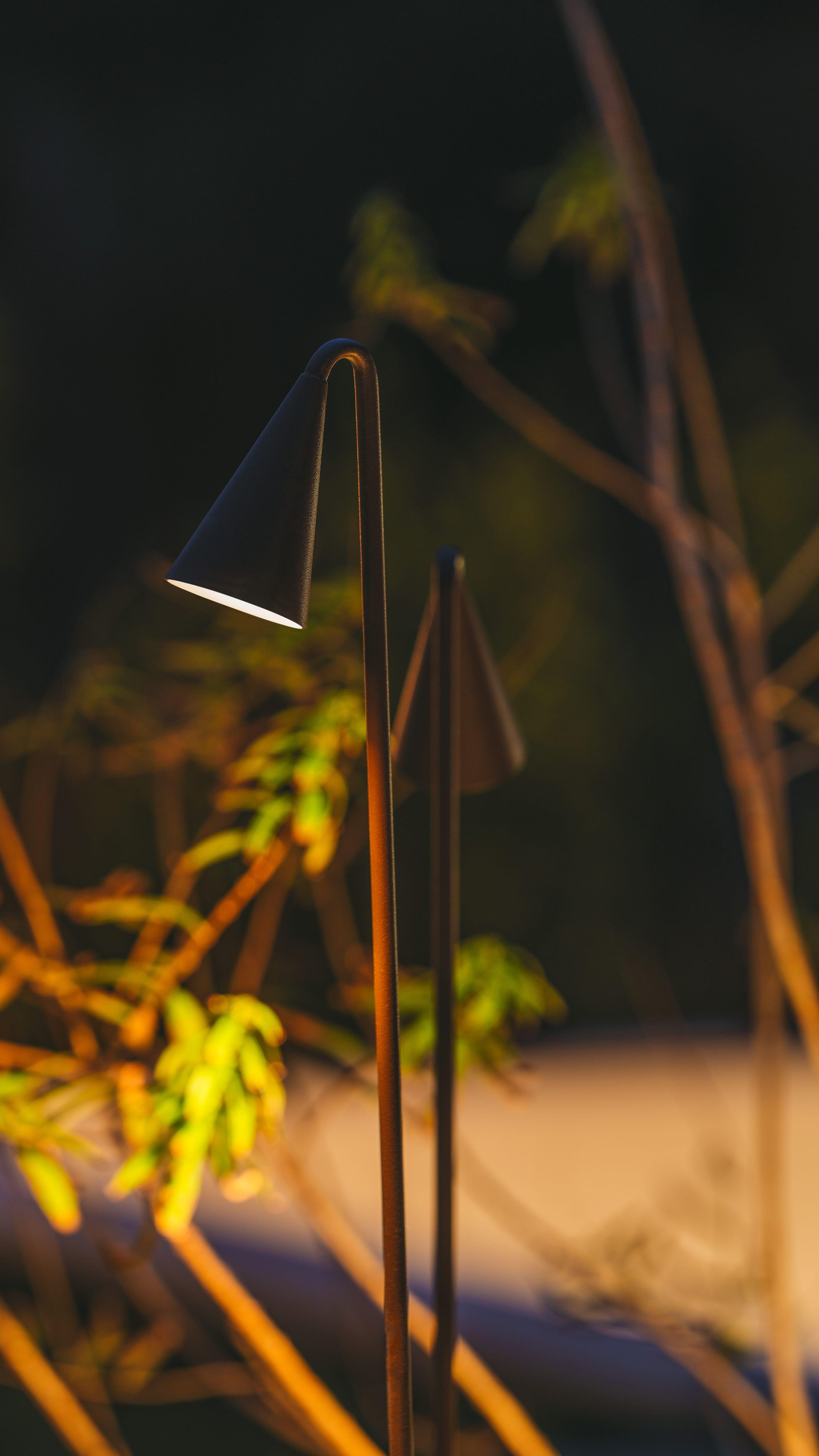 La luminaria para exteriores Brisa está diseñada para integrarse de forma natural en la vegetación del jardín, los patios y los senderos. Su elegante silueta y su cálido y brillante haz de luz le confieren una presencia discreta que realza el espacio exterior sin dominarlo.