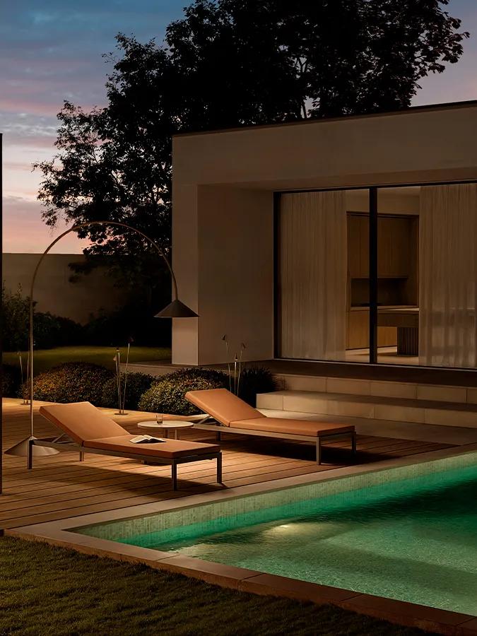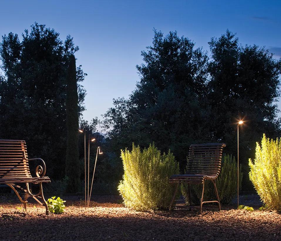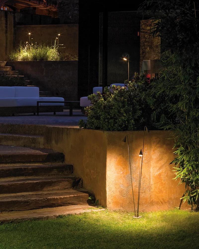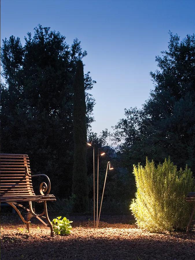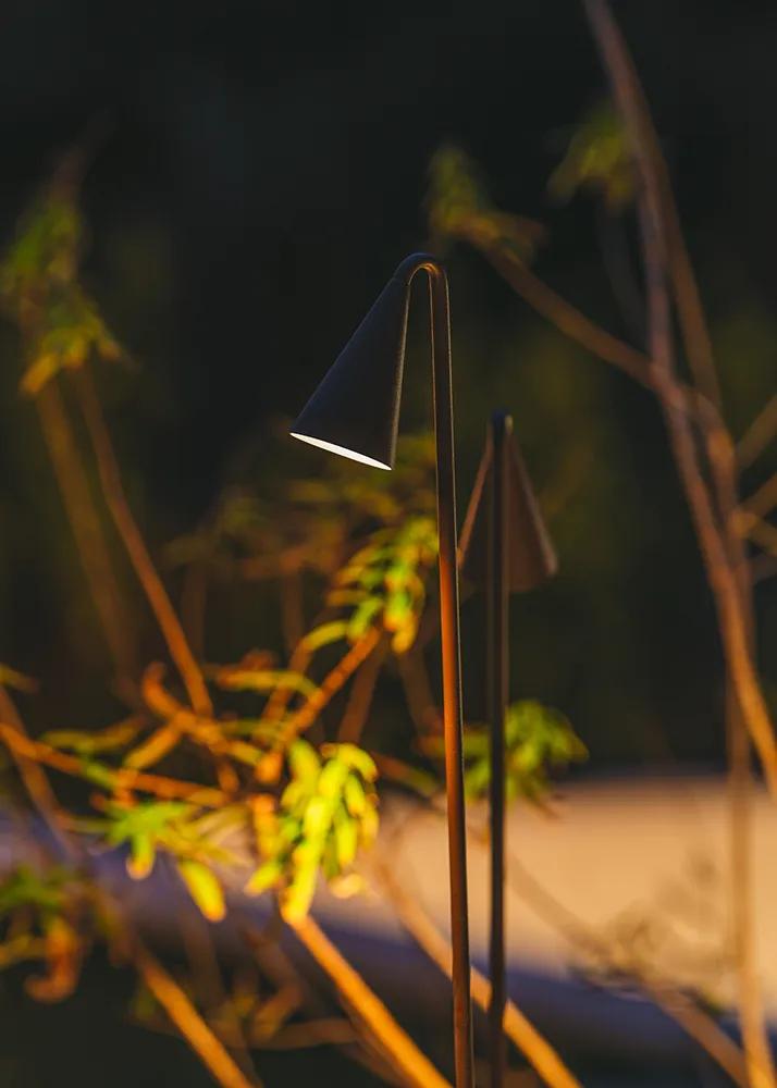 La luminaria para exteriores Brisa está diseñada para integrarse de forma natural en la vegetación del jardín, los patios y los senderos. Su elegante silueta y su cálido y brillante haz de luz le confieren una presencia discreta que realza el espacio exterior sin dominarlo.