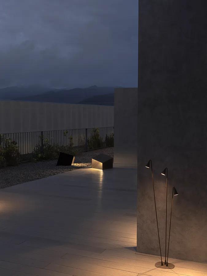 Estas lámparas LED de exteriores, disponibles en versiones de superficie (con base) o empotradas, dirigen un haz de luz intensa y cálida sobre senderos, macizos y zonas verdes que requieren alta intensidad lumínica. Con una estructura esbelta y cabezal inclinable, Brisa ofrece direccionalidad y confort visual, minimizando la contaminación lumínica gracias a su orientación suave hacia abajo. Disponible en dos acabados naturales —lacado kaki mate o lacado óxido mate—, la colección aporta elegancia sofisticada y funcionalidad, ideal para iluminar jardines, terrazas y patios con estética serena y precisión lumínica.