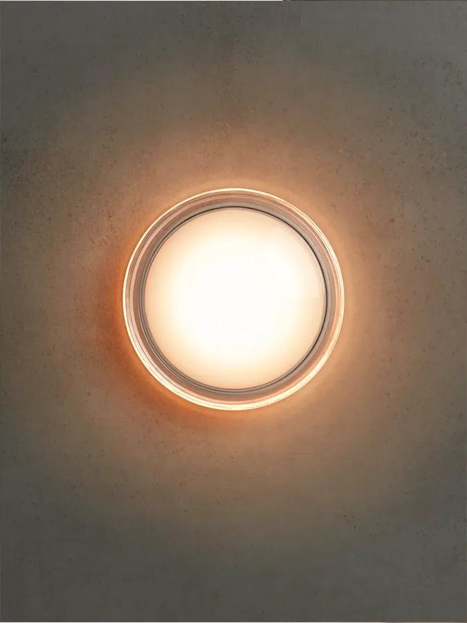Diminuta y compacta, esta pieza se integra en cualquier ambiente exterior. Sus suaves capas circulares resaltan la textura de una pared o fachada. Instalada como única estrella en la oscuridad o combinada con otros elementos de la colección Dots para crear una combinación luminosa, el nuevo difusor de vidrio confiere delicadeza al ambiente.