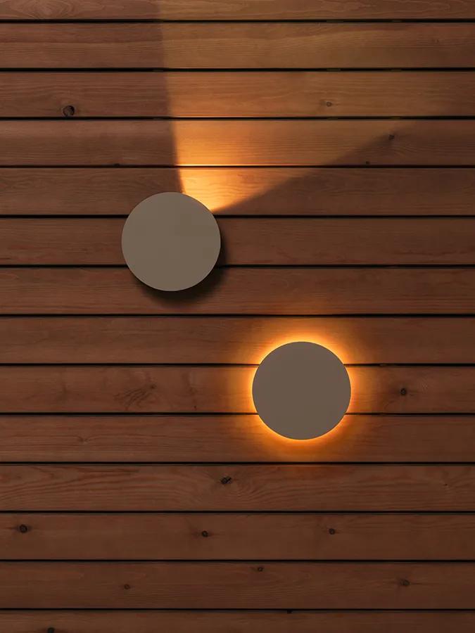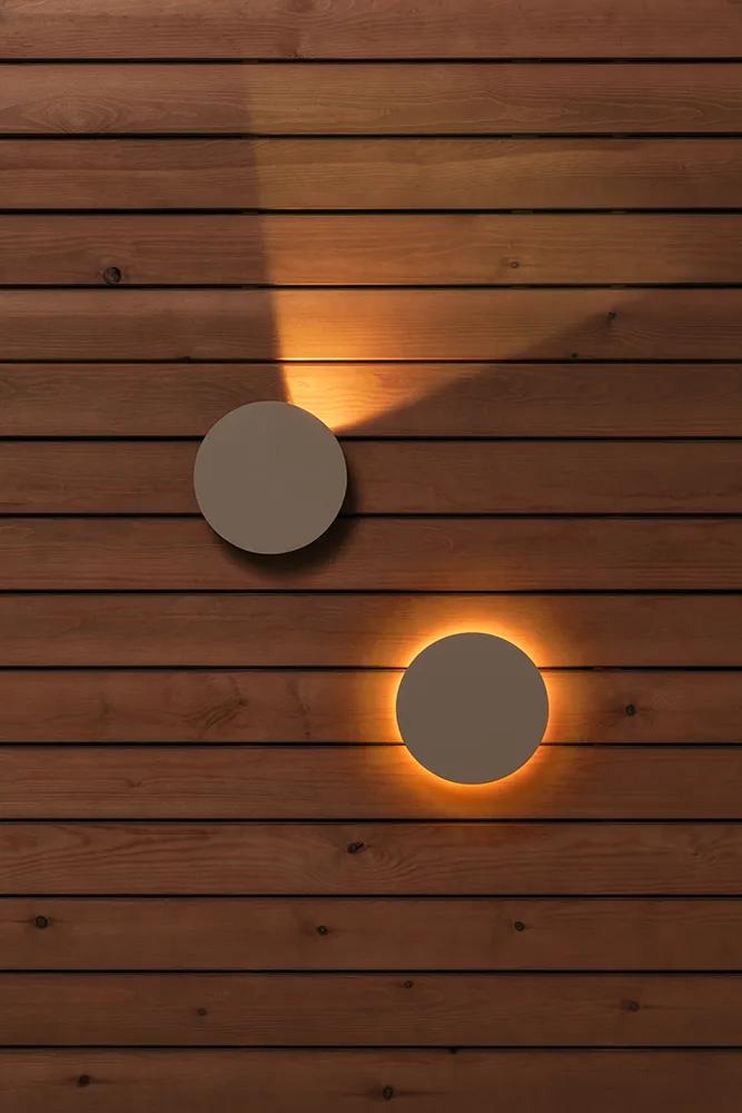 Los apliques de pared Dots Outdoor se pueden instalar individualmente con el fin de resaltar elementos específicos, o agrupados para crear motivos luminosos únicos, a base de haces y halos.