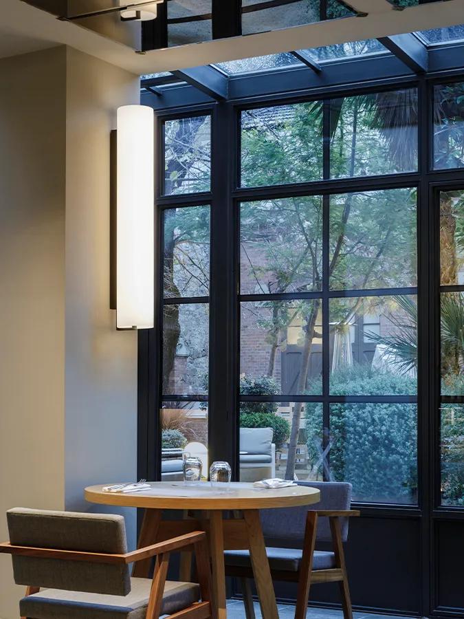 El aplique de pared Kontorno ofrece soluciones personalizadas que se adaptan a una amplia variedad de espacios. Las luminarias pueden instalarse solas o en grupos de diferentes tamaños, en vertical u horizontal, dependiendo de la configuración del espacio.