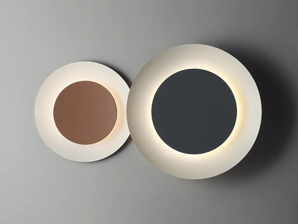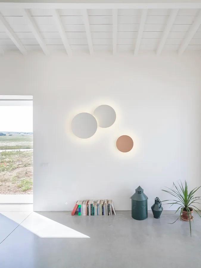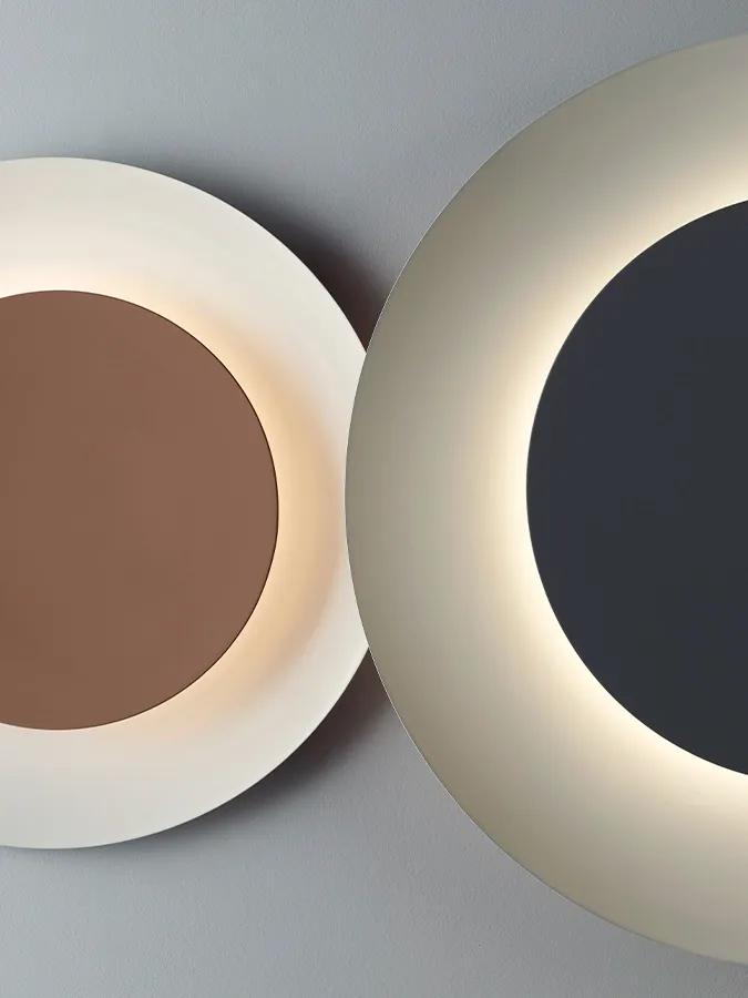 La colección de apliques Puck Wall Art es una evolución de la colección Puck, que permite crear composiciones personalizadas a partir de dos discos superpuestos de distintos tamaños.